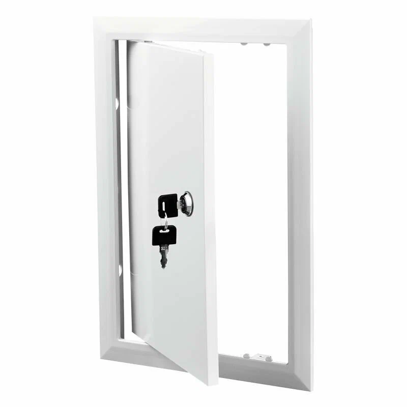 Ревизионный металлический люк монтируется на саморезы или клей. Для установки подготовьте нишу. Правильный размер – это когда люк входит c небольшими усилием и плотно прилегает к стене. Для установки на саморез, просверлите отверстия во внутренней рамке. Вставьте люк в нишу, установите саморез и закрепите. Если вы монтируете люк на клей, зачистите внутреннюю поверхность места для установки наждачной бумагой и обезжирьте. Нанесите клей на внутреннею рамку и поверхность ниши. Вставьте и прижмите. Оставьте для полного застывания клея.