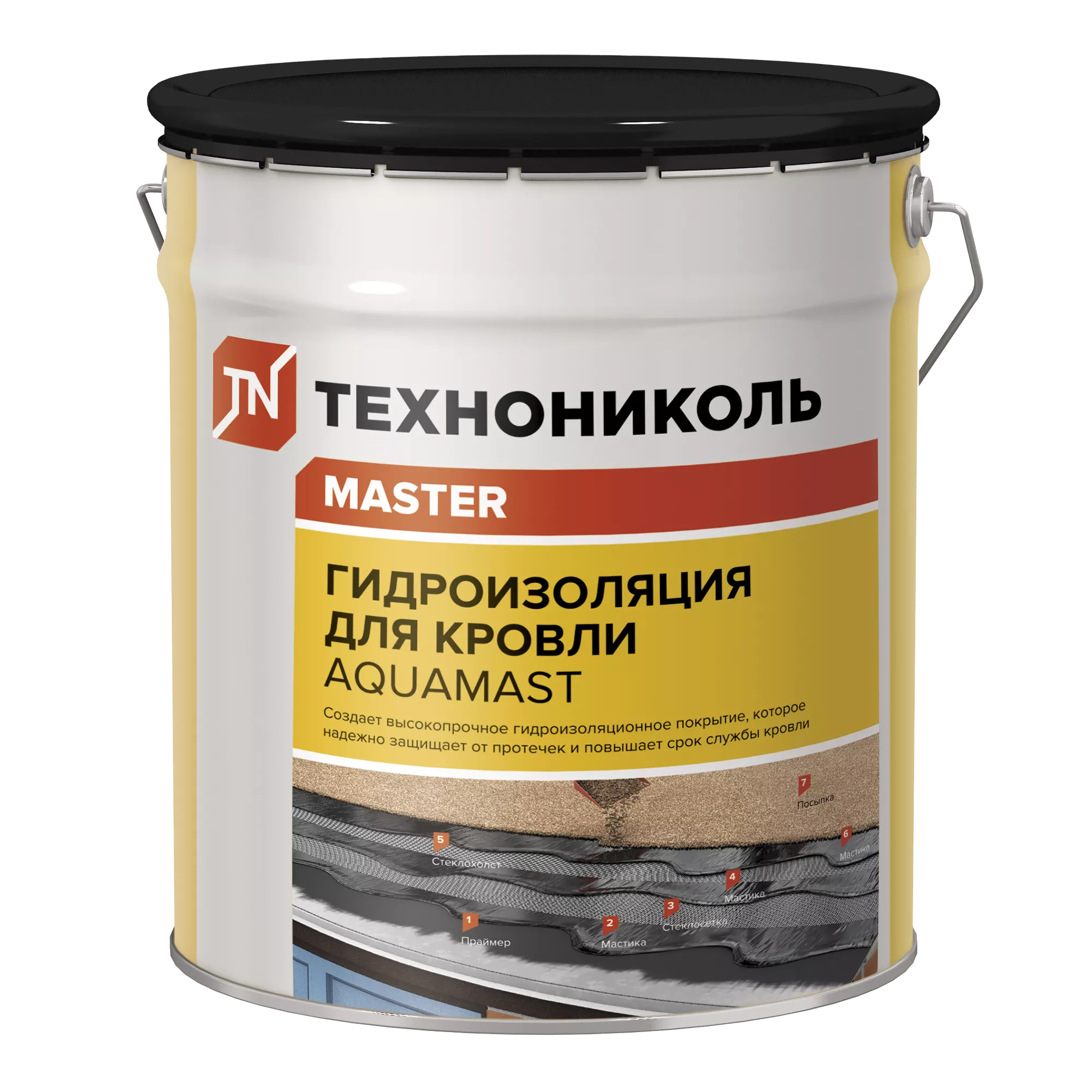 Мастика битумно-резиновая кровельная и гидроизоляционная битумно-резиновая холодная AquaMast представляет собой готовый к применению многокомпонентный материал, состоящий из нефтяного битума, модифицированного дробленой резиной, технологических добавок, минеральных наполнителей и органического растворителя. Предназначена для устройства мастичной и ремонта всех видов кровель. После высыхания образует высокопрочное покрытие с широким диапазоном температур эксплуатации.