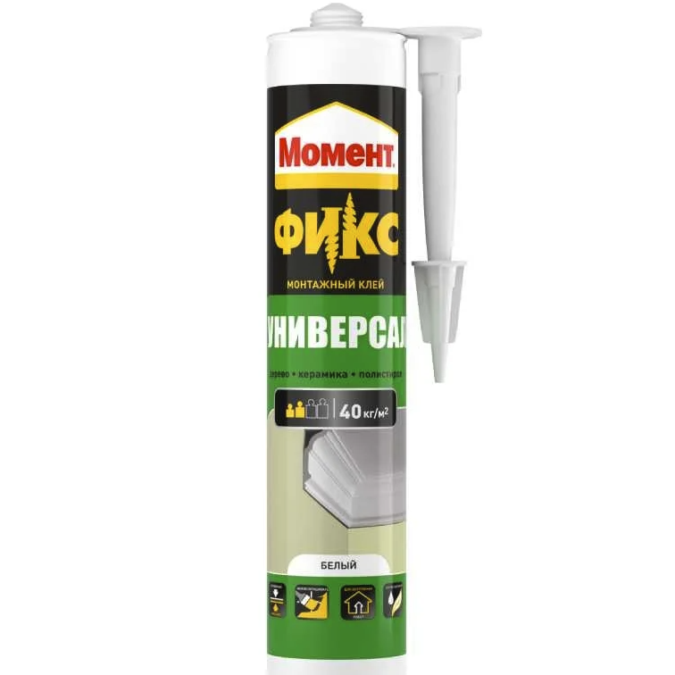 Монтажный клей Момент Фикс Универсал 380 г используется для установки подоконников, дверных рам, а также для крепления потолочной плитки, металлических и деревянных элементов, декоративных розеток. Изделие предназначается для внутреннего применения.