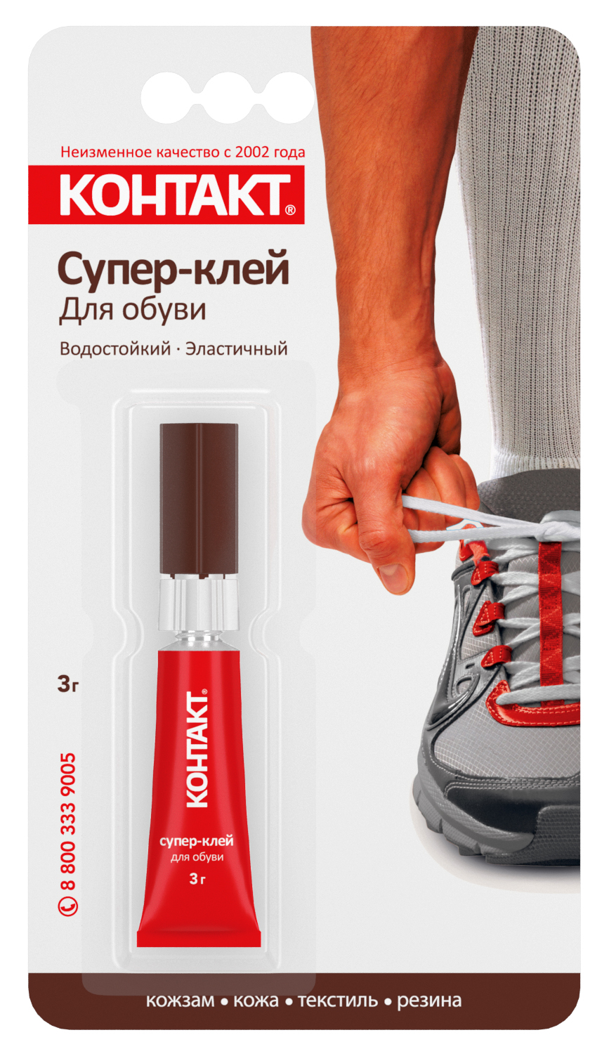 Однокомпонентный клей-гель на основе этилцианакрилата с добавлением загустителей и пластифицирующих добавок. Идеален для быстрого и надёжного ремонта обуви.