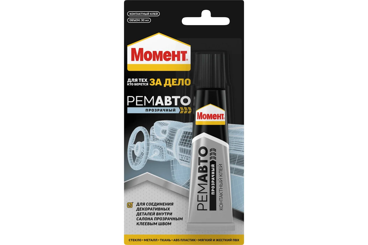Идеален для локального авторемонта: склеивания декоративных деталей внутри салона прозрачным клеевым швом.