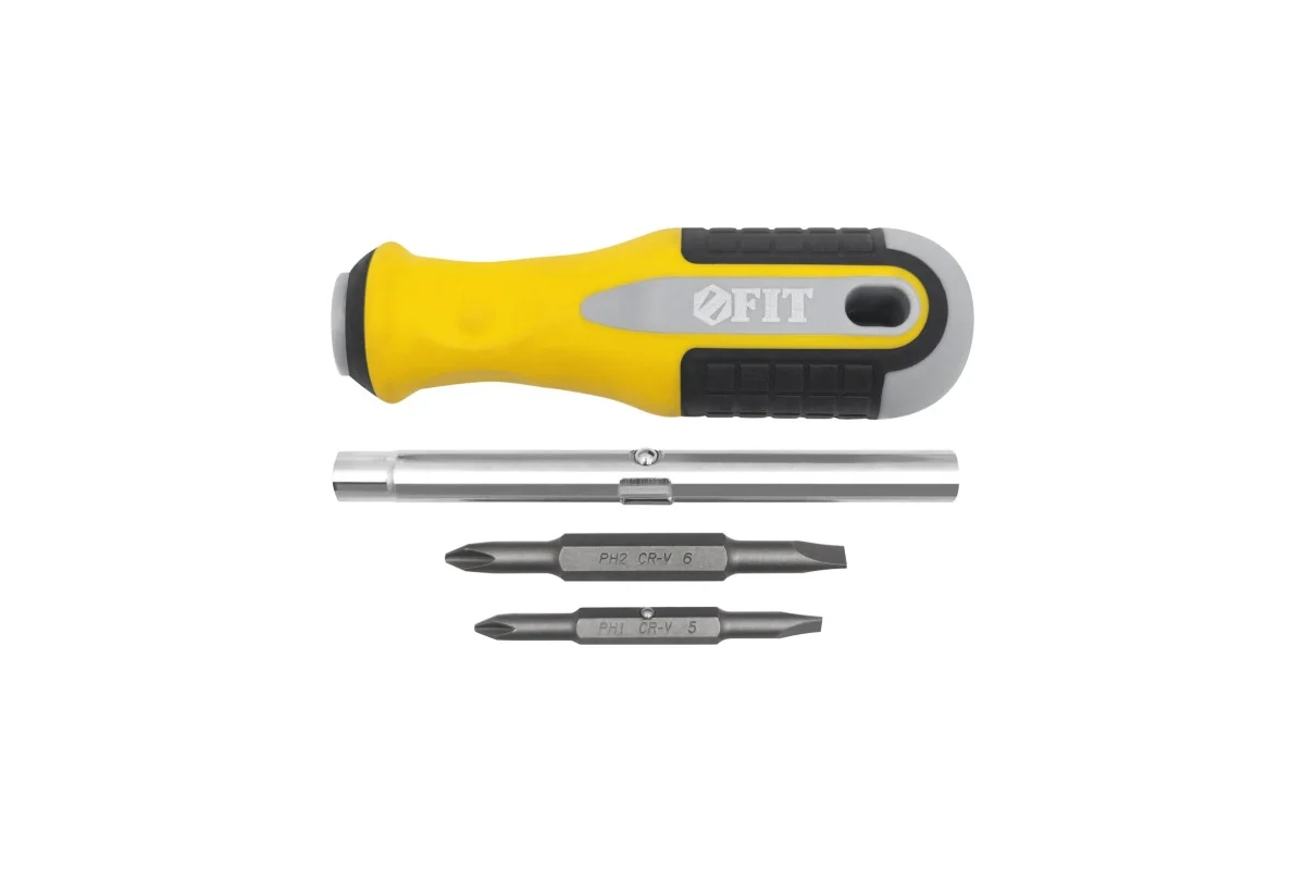 В комплекте: две двусторонние биты PH1/SL5, PH2/ SL6, переставной стержень с торцевыми головками H6 и H8.