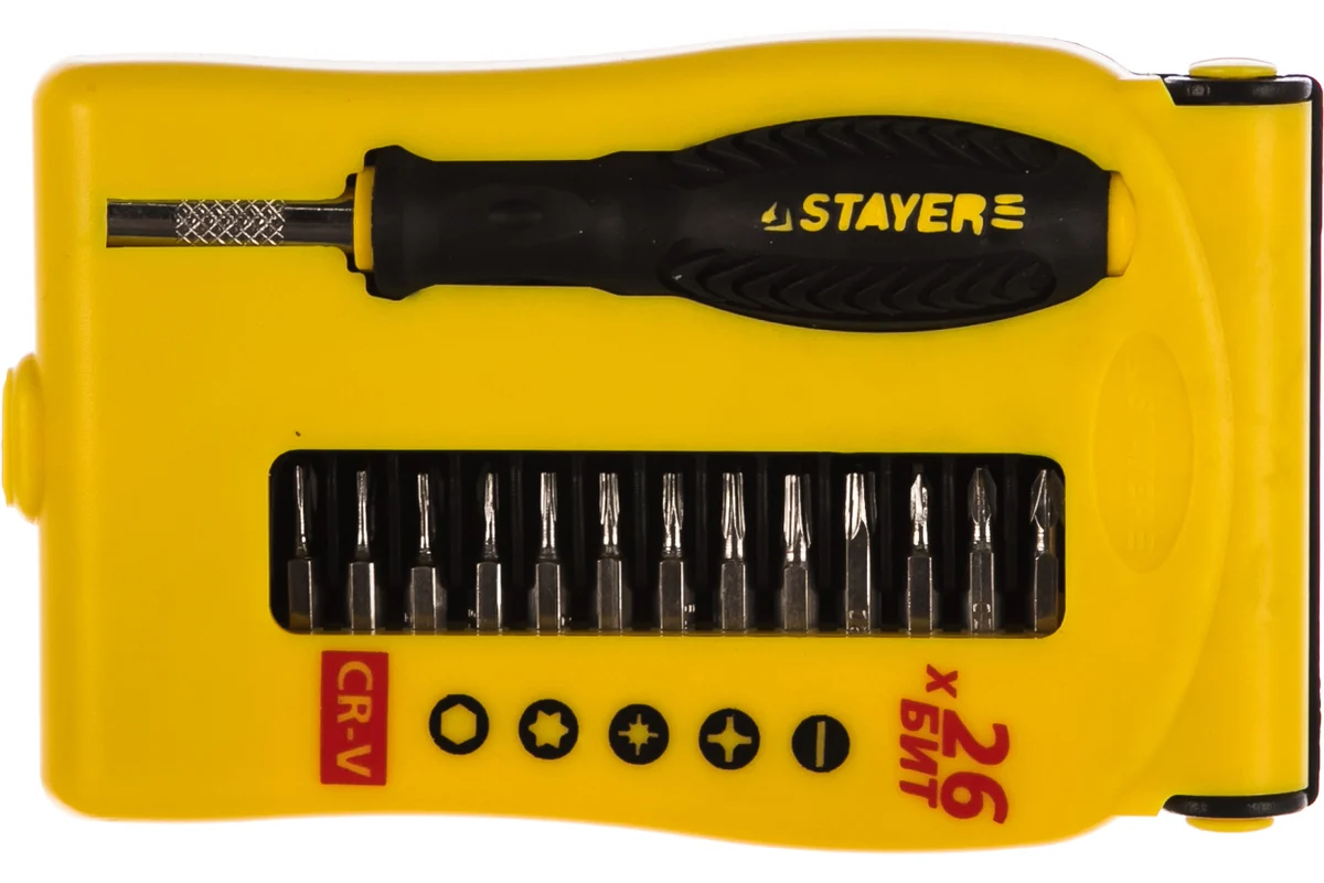 Набор для точных работ 28 предметов STAYER применяется при выполнении монтажно-демонтажных операций. Благодаря специальной форме рукоятки инструмент надежно лежит в руке во время использования. Каждая насадка из набора выполнена из сверхпрочной хромованадиевой стали, что повышает срок эксплуатации.