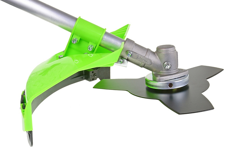 Данная модель используется для скашивания травы на приусадебных участках и в саду. Триммер способен справится с любыми задачами, которые будут установлены перед ним. Также без особых усилий поможет привести в порядок клумбу. В комплекте бензо косилки имеется нож и катушка с леской, что позволяет использовать каждый режущий элемент по назначению. Наличие ремня делает процесс кошения удобным и не отнимает много сил.